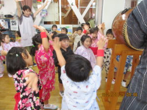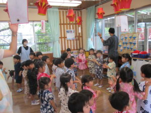 盆踊りは、ミンミン音頭・お化け花火音頭・藤枝音頭の3曲を踊りました。