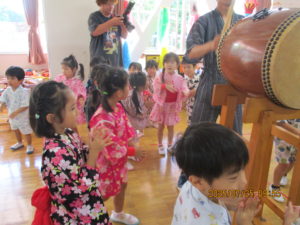 24日には乳児の夏祭りごっこ、翌25日に幼児の夏祭りごっこを行いました。